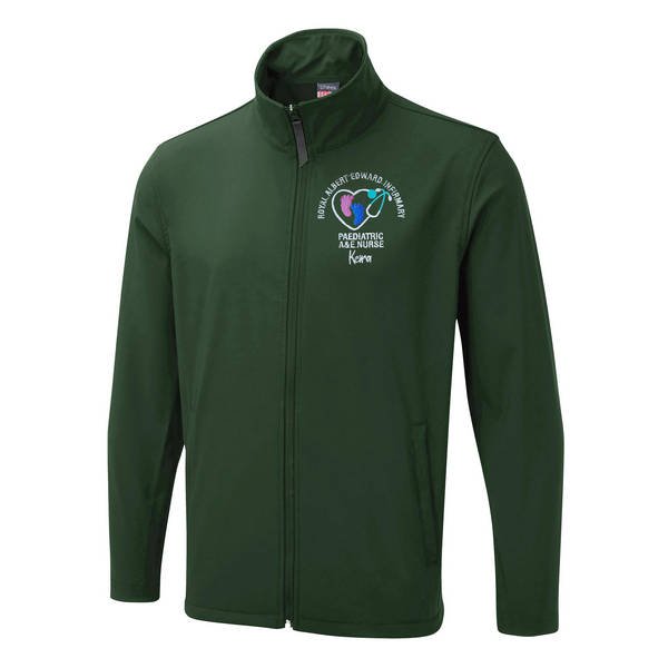 To order your personalised Healthcare Nursing Stethoscope & Baby Feet Design Soft Shell Jacket, please select your size, colour. Then use the text boxes provided to supply what you would like us to stitch on your soft shell.