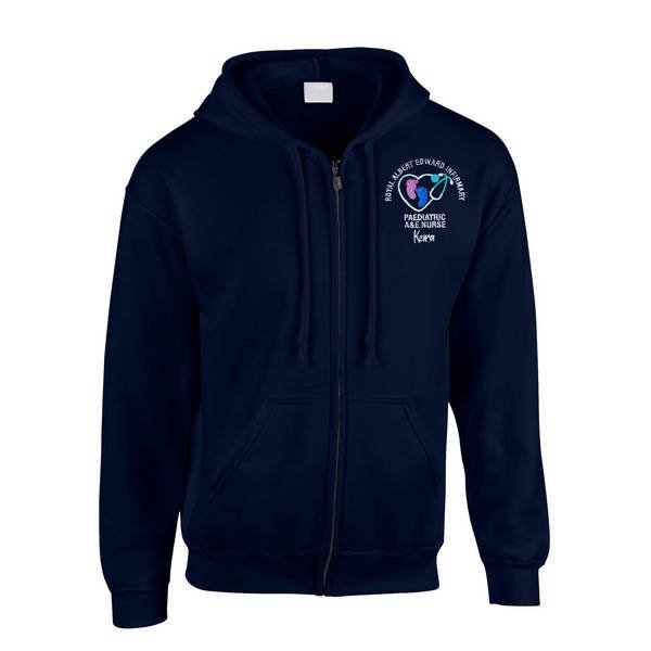 To order your personalised Healthcare Nursing Stethoscope Baby Feet Design Zipped Hoodie, please select your size and colour. Then use the text boxes provided to supply what you would like us to stitch on your zipped hoodie.